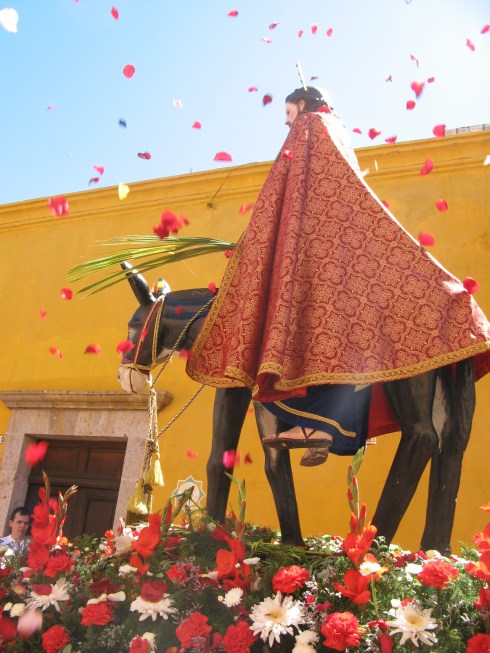 The Sunday before Palm Sunday, those willing to get up early enough (i.e., not us) could watch Jesus’ entry into the city after a six-hour walk from the church in Atotonilco. It’s called “Lord of the Column,” marking the station where Jesus pauses to rest on a column. Yes, more stations of the cross; if Mexico had its way, poor Jesus would have been on his final walk for well over a month. But I like the way the rituals here give believers a good long time to concentrate on the key event of their religion. There is a political echo in this walk, also, since in much more recent years, Father Miguel Hidalgo led a march from Atotonilco to San Miguel (and beyond), one of the opening moves of the war of independence from Spain.