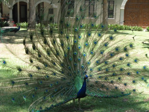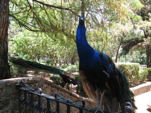 When I got back to the hotel after my murals tour, we all headed down to Xochimilco, home of the Dolores Olmeda Museum. Olmeda was an art collector, and a patron (and occasional model) of Diego Rivera’s, so there are lots of Rivera and Kahlo paintings, including a room full of sunsets Rivera painted from her beachfront home in Acapulco that I found very beautiful. The Kahlo paintings were all off in an exhibit in Europe, unfortunately, but there were other interesting pieces, and the museum itself is a peaceful oasis. It also has peacocks wandering all over the grounds.