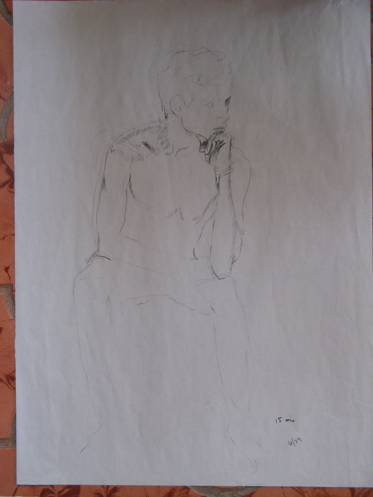 6/29. Only the vaguest outline gives the gesture (it works!)–the left hand is getting somewhere though.