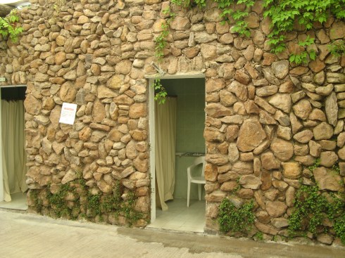I don’t usually enjoy swimming much because I’m a complete wimp about the initial cold, and even though most water does feel warmer after a few minutes if you just take the plunge, I can’t stay too long in water that’s significantly below body temperature. Also, breathing the chlorine makes my lungs ache after an hour or two. In blessed contrast, a day at La Gruta, with its warm, chlorine-free waters, is like a day spent in the bath, except that my bathtub at home isn’t surrounded by tropical plants and stone walls, nor is it under a blue sky, and if I want to sip a limeade I’m expected to get out and make it myself.