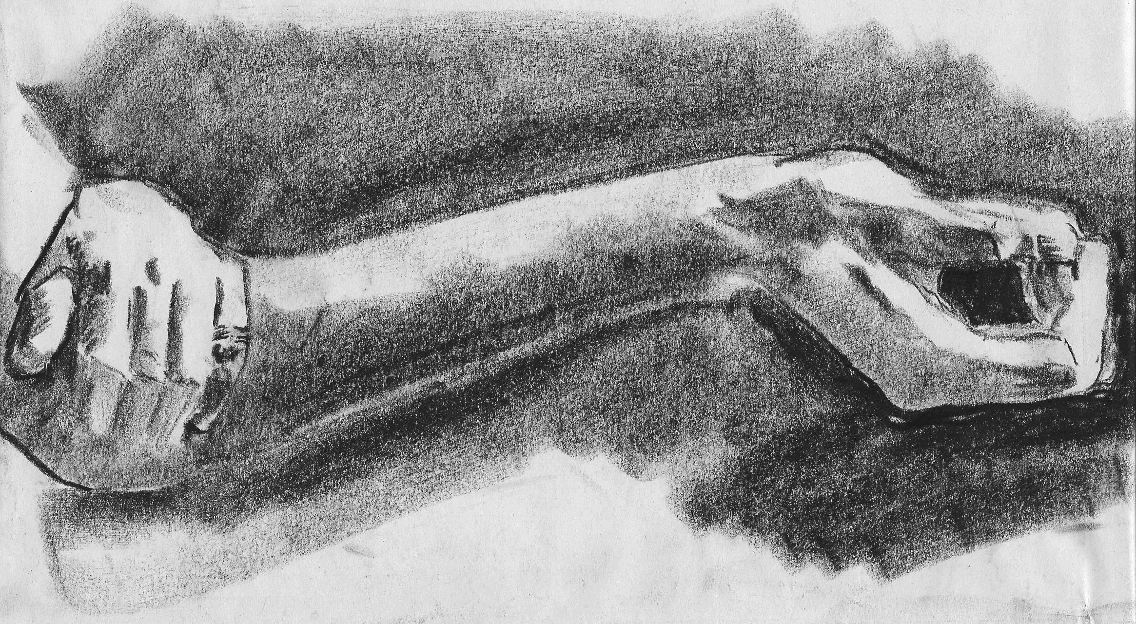 I’m tempted to make this look better-proportioned than it is by splitting it in two and passing it off as two drawings. I got lost in the detail, as I do with hands, and didn’t realize until afterwards that I’d drawn her right hand so much larger than the left that they look like they’re from two different people. It’s okay. Good things are happening.