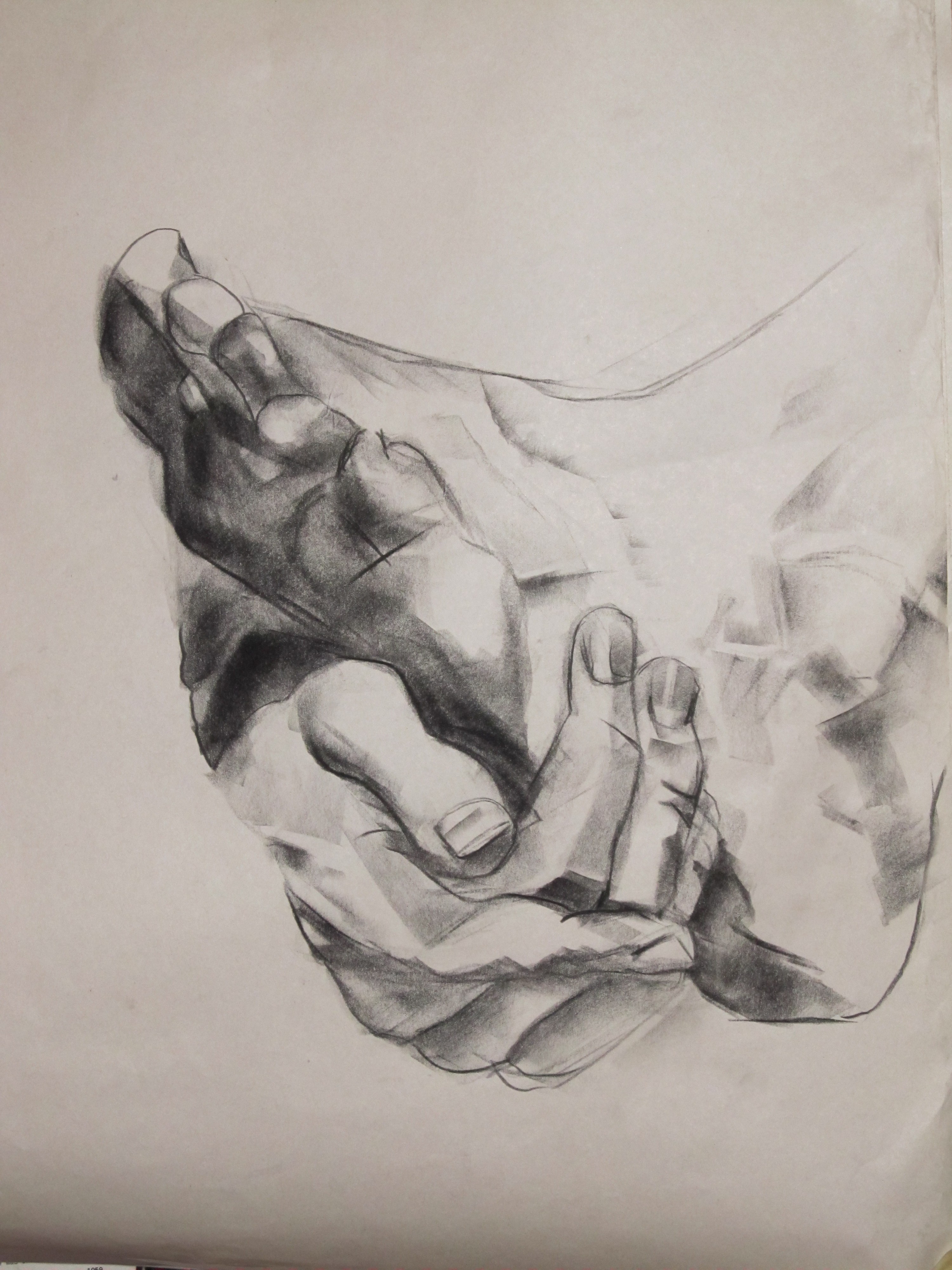 I still have to make my final, week-late Black History Month post. Today, though, just drawings. Mostly hands; a few feet. Our church’s lobby serves as a rotating monthly gallery, and I’m seriously contemplating having a show there consisting entirely of drawings of hands, but I’d have to have 8-10 drawings I was happy with. None of these is quite it, though the top left one comes closest. The model with the fabulous hands was there again this morning. I’m going to do justice to those veins eventually.
