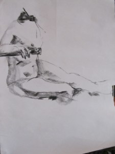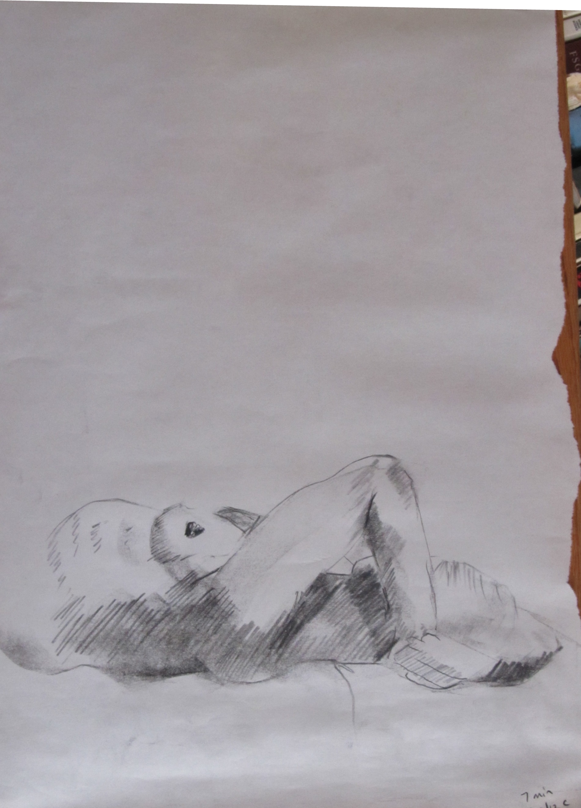 On the second 10-minute pose (E) I got it again. This hand is the best thing I did all morning, especially because I find this model’s hands difficult. Hands are hands, you might think, but these are extra-challenging for me. I also like the shadows on her belly.