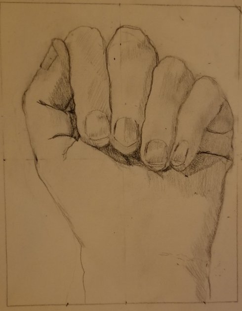 It’s really fun to do together and Katie is a great teacher. Also, this is the best drawing I’ve ever done of my left hand, despite its being a fairly frequent subject, being that it’s always–can I resist the pun? nope–on hand.