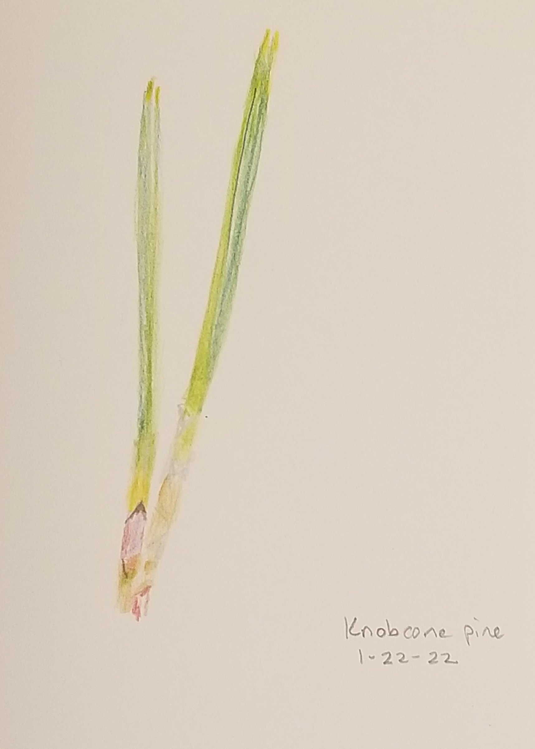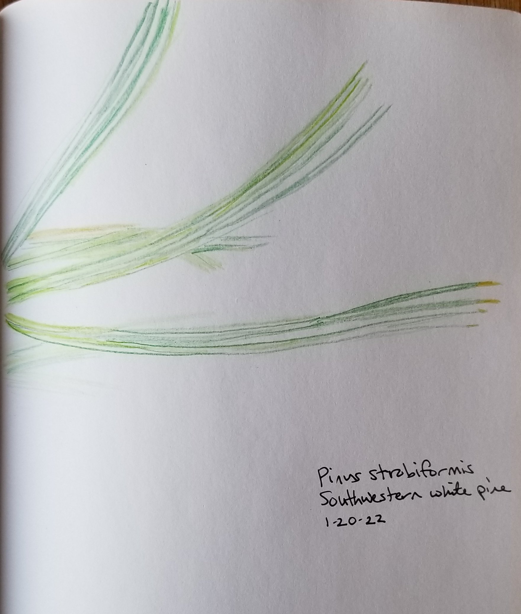 I couldn’t resist drawing the cone on this one. It was so beautiful in the midst of its bouquet of leaves.