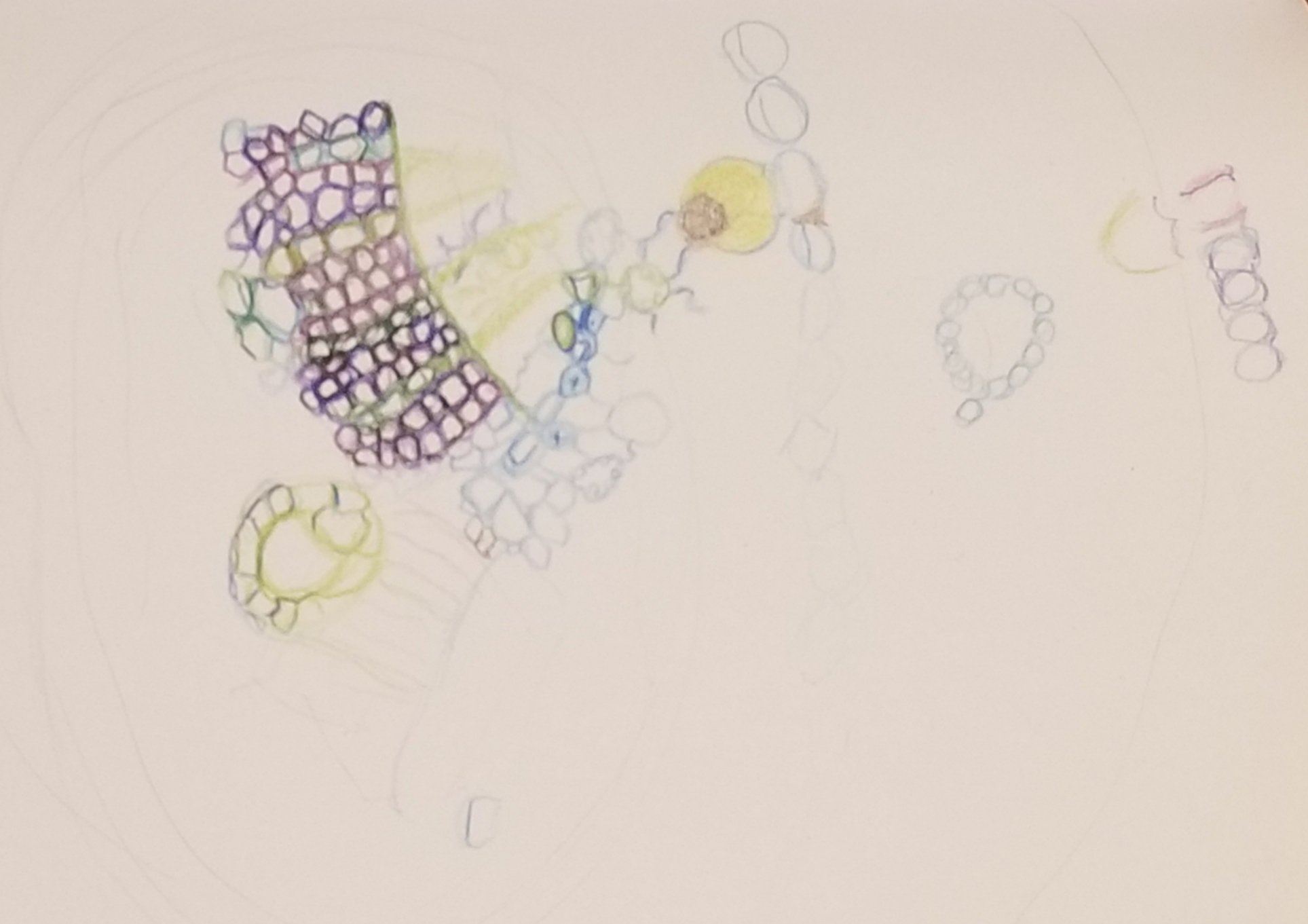 A few days ago, I thought it would be exciting to see what a pine needle looks like under a microscope, and found some gorgeous photos of Austrian pine (Pinus nigra) needles, in cross section, from the lab of a Czech scientist named Josef Reischig. (His authorship heirs donated 384 pictures under CC BY SA 3.0 license as a part of Wikimedia Czech Republic‘s GLAM initiative.) Today is Pinus nigra’s day, so I began drawing. But my self-imposed rule of drawing a leaf a day has met its match; I’ve spent all the time I can manage and am far, far from being done with this one. That’s okay. Rules are made to be reconsidered, especially self-imposed ones. So here is the drawing so far.