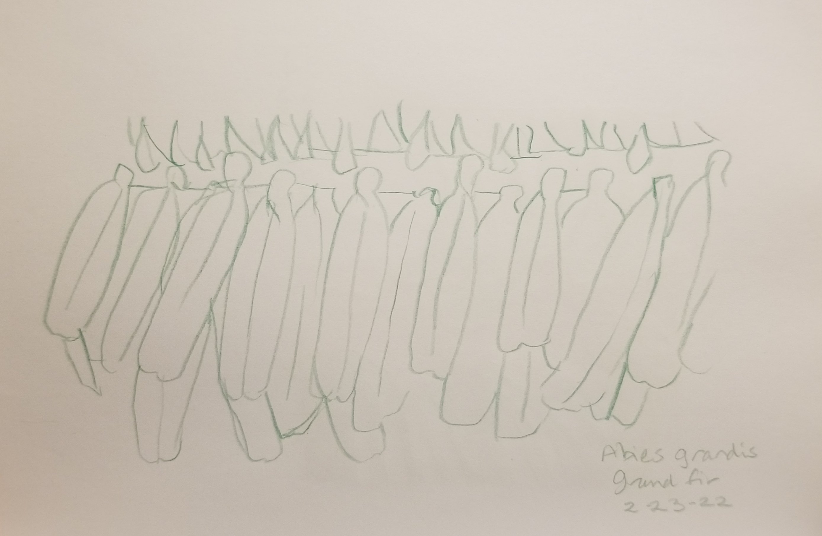 Something I find endlessly fascinating about nature is the way things are patterned but never quite completely regular. What I loved about these needles, in addition to the little twist at the base of each one, was their pattern of alternating short and long, and the zigzag rhythm formed by their placement on the twig. But once I looked closely enough to draw them, the irregularities in the pattern became evident. Drawing them as a schematic seemed like a way to highlight both the pattern and the deviation from it.