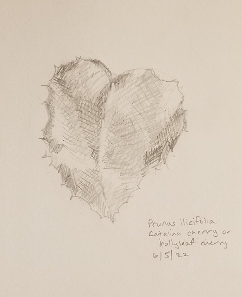 When I made this decision, I thought, “But I haven’t even gotten to the toothed leaves yet!” and it’s true, I’m still on simple untoothed leaves, but lo and behold, today’s leaf, while not toothed, is–um–fanged? Due to the sharp spines along the leaf edges, it’s aptly called ilicifolia, “Ilex,” i.e., holly, “-leaved.”