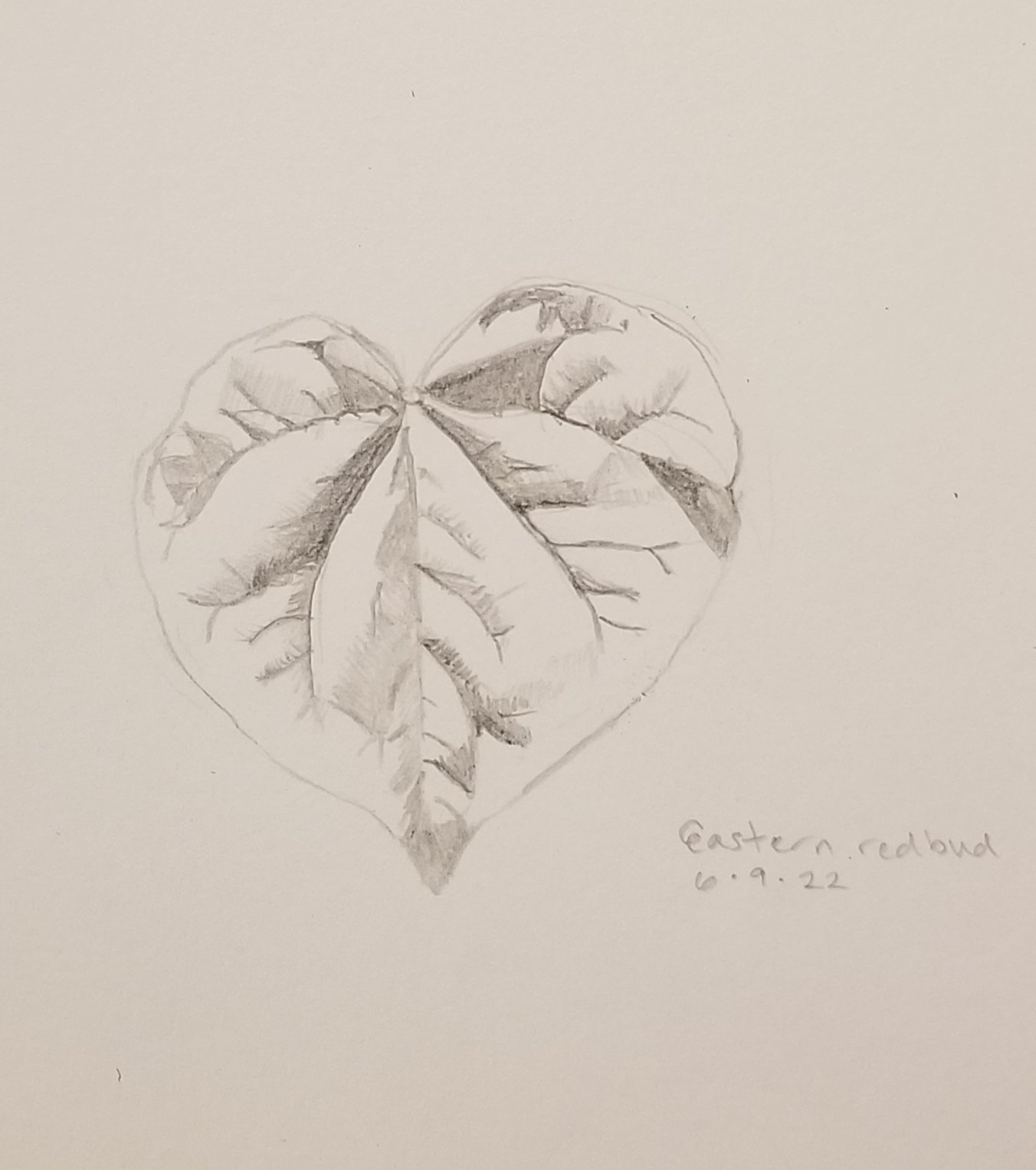 Having gone into such delicate detail with the previous drawing, I tried to do the opposite with the interesting light on this leaf. How quick and rough can the marks be and still get the shadow across? I’m not so good at quick and rough, and immediately started refining. An old story, and not only in visual art.