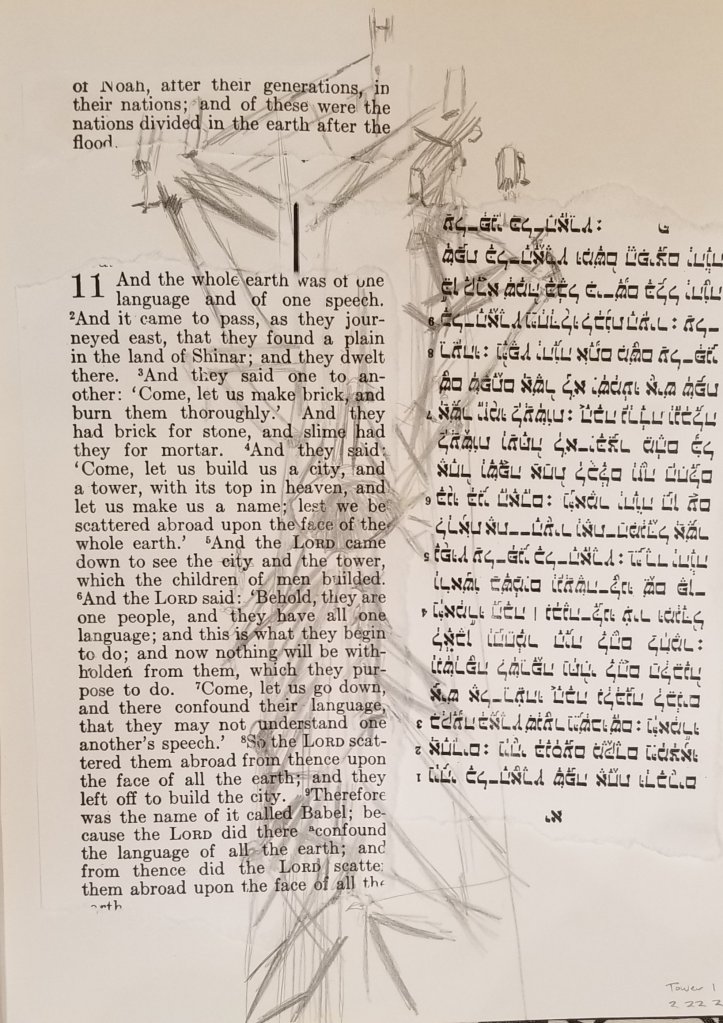 I’ve been intrigued by the Tower of Babel for a long time, so I’ve decided to really dig into it via art (and maybe writing) by making it my Lent project. Every day, an exploration of some aspect or interpretation or tangent of this very brief (nine verses, Genesis 11:1-9), enigmatic story. Here’s the first.