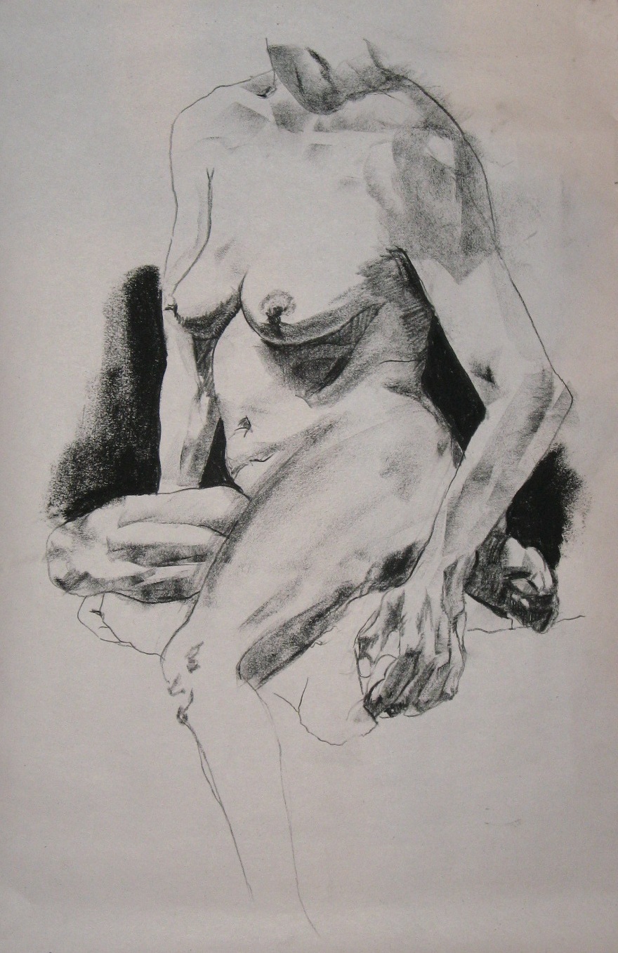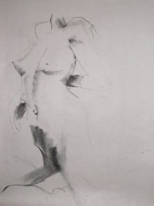 On the second 10-minute pose (E) I got it again. This hand is the best thing I did all morning, especially because I find this model’s hands difficult. Hands are hands, you might think, but these are extra-challenging for me. I also like the shadows on her belly.