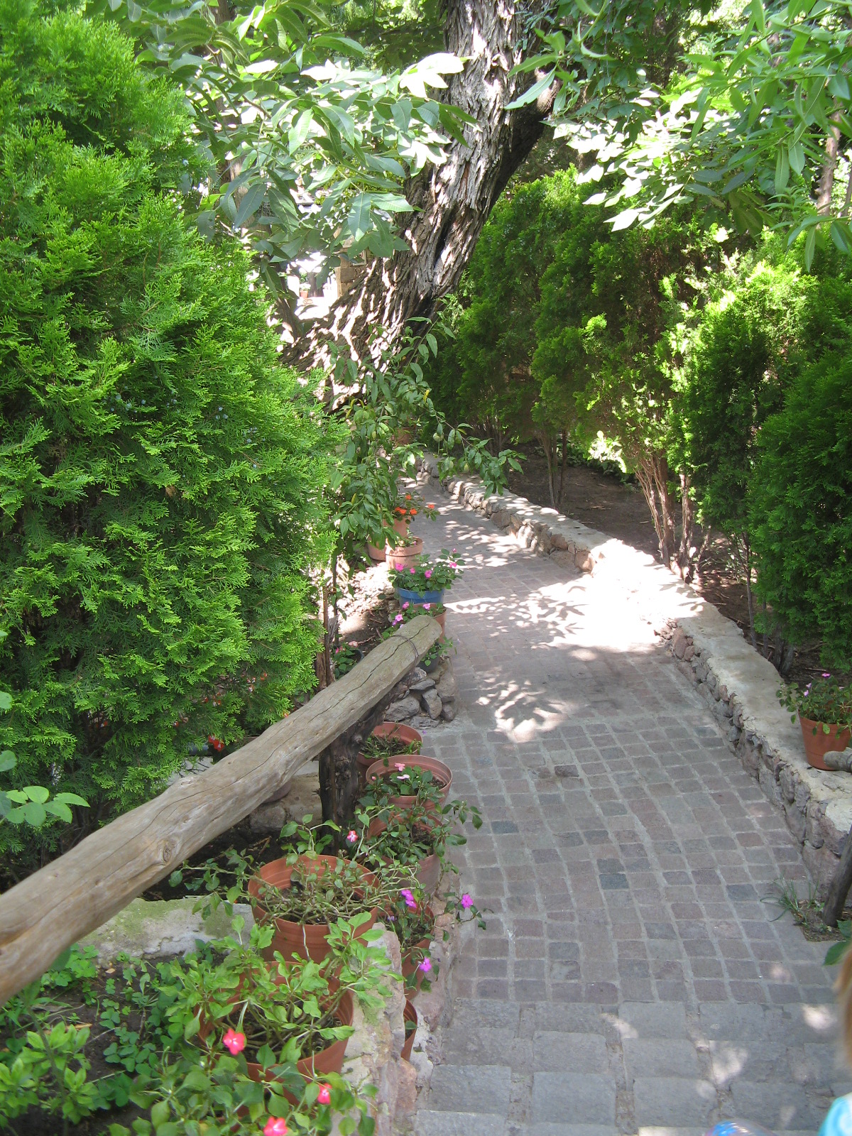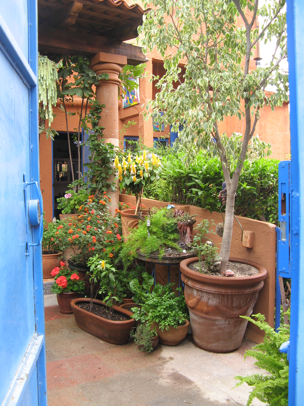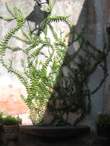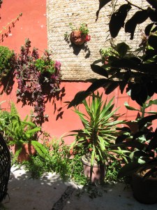 The photo above is of our patio, blessed by our neighbor Adriana (tenant of one of the three side-by-side apartments in our house) who’s a great gardener. She squeezes plants in everywhere until it’s like walking through a benevolent jungle.