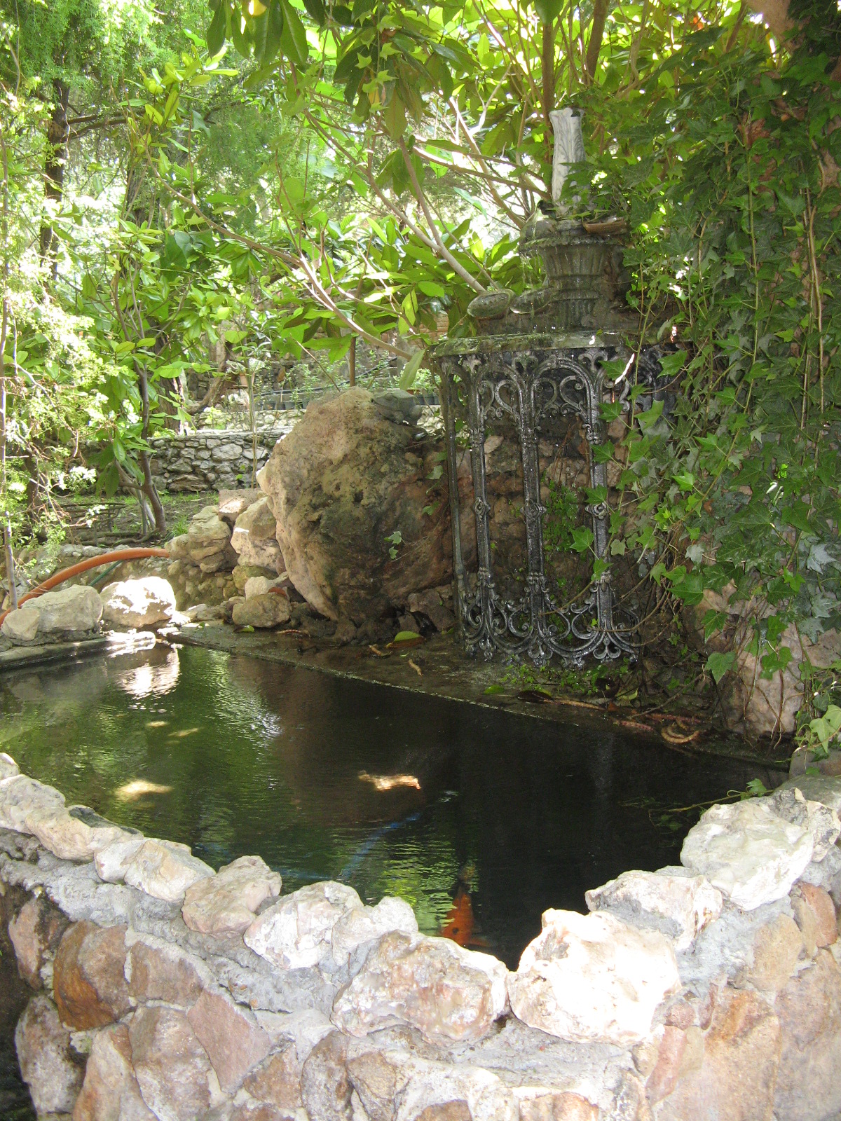 I don’t usually enjoy swimming much because I’m a complete wimp about the initial cold, and even though most water does feel warmer after a few minutes if you just take the plunge, I can’t stay too long in water that’s significantly below body temperature. Also, breathing the chlorine makes my lungs ache after an hour or two. In blessed contrast, a day at La Gruta, with its warm, chlorine-free waters, is like a day spent in the bath, except that my bathtub at home isn’t surrounded by tropical plants and stone walls, nor is it under a blue sky, and if I want to sip a limeade I’m expected to get out and make it myself.