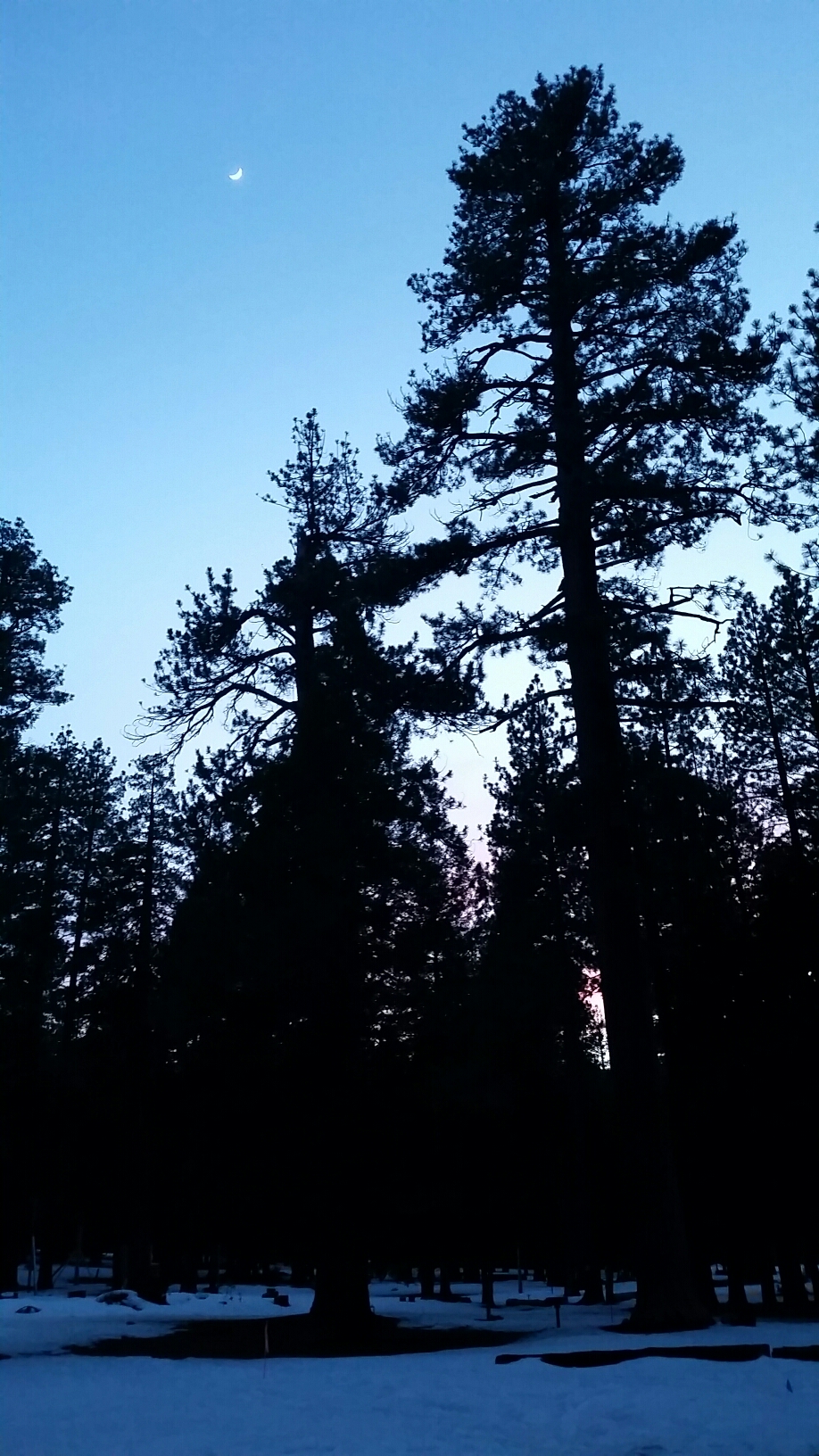 Today’s word: quiet. Just behind me as I took this photo was a road circling Lake Tahoe, and behind that was the bustle of the family camp I’m enjoying this weekend. The trees, snow and moon seemed to exude a quiet that blanketed all of that.
